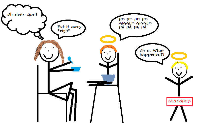 Trying not to laugh I tell him to stop being silly then I notice that younger boy (who I might add is not quite one) is laughing so hard he's almost crying. Still trying not to laugh I tell him to put his willy away and smiling he does.